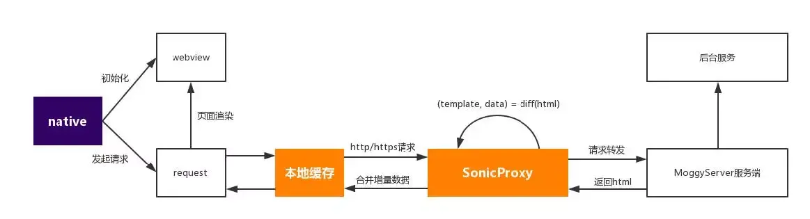 相对传统加载方案中,优化方案在native执行时候实例化webview,同时并行向sonic服务器发起请求,将此前的串行操作优化为并行,因此此处耗时由sum(webview,request)转变成max(webview,request),降低了客户端层面的耗时。