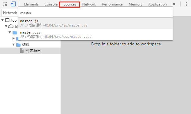 Ctrl+P快速切换文件当项目中文件很多时,可以在控制台的Sources面板下,用Ctrl+P(cmd+p on mac),快速搜寻和打开你想找的文件。