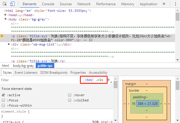 在控制台的Elements面板下,在Styles样式编辑中可以模拟元素的不同状态,例如hover和focus等,方便我们查看不同状态下元素的样式;还可以动态添加类名来调整样式。
