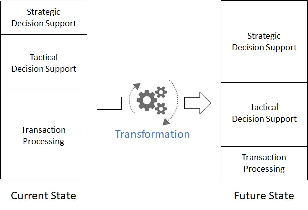 然而,如果较低价值的业务功能已经实现了数字化并且具备了可靠性和可预测性,那么就可以开始转型。否则,演变就不太可能产生预期的业务成果。