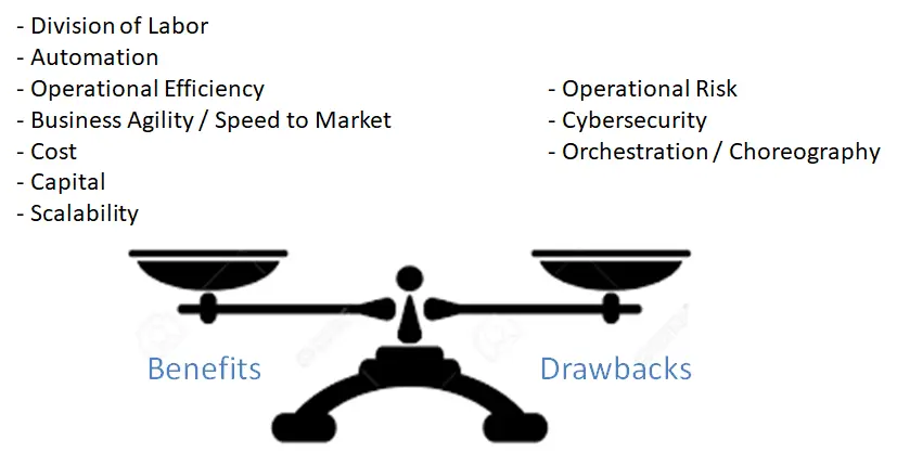 然而,更重要的是,我们需要认识到,新的业务运营模式及其明确的分工可能会引入一定数量的操作风险和安全挑战。因此,在设计基于BPaaS的业务运营模式之前,需要了解这种去中心化功能结构在战术和运营方面的优势和劣势。图30提供了在采用这种方法来执行业务功能之前需要评估的优点和缺点的清单。
