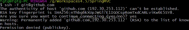 若该步没有操作,执行命令:$ ssh -T git@github.com报这样的错误: