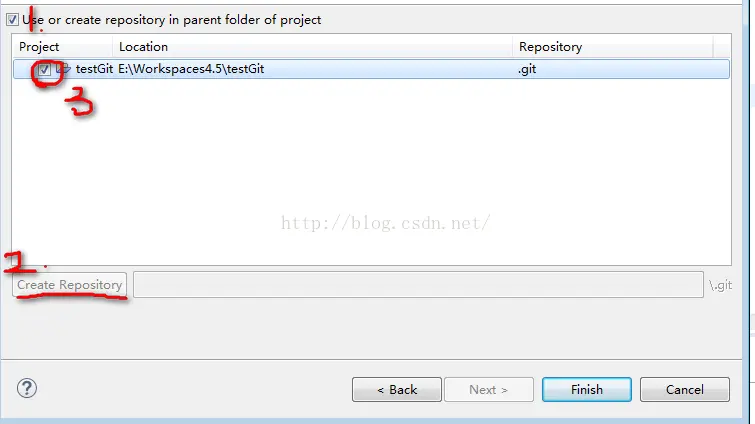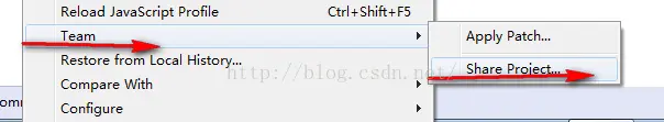 打开eclipse,创建项目“testGit”里面随便写点什么,然后"File"--"Team"--"Share Project"--"Git"--"next"