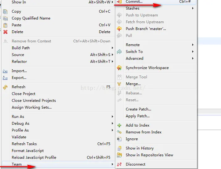 1.如何提交已经修改的项目,已修改的项目文件夹出现“*”号标志,选择带“*”号标志的文件右击“Team”--"commit"
