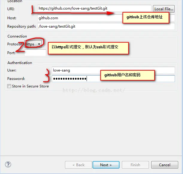 8.git提供了多重协议用来连接git服务器,其中最常见的就是https和git,git就是可以免用户名和密码的,不同的协议,项目连接地址是有区别的,如下