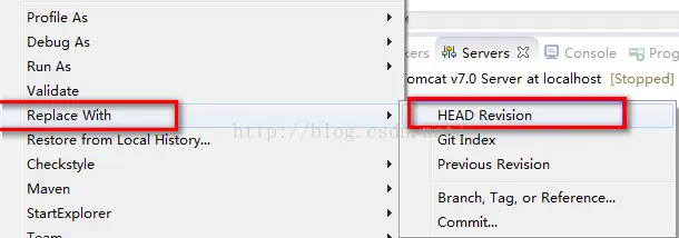 4.撤销恢复修改:Replace With--HEAD Revision (命令行为 git checkout head .)