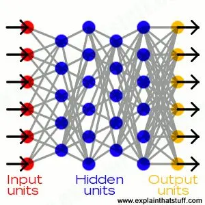 一个典型的神经网络,由几个、上百个、上千个甚至几百万个称为“单元”的人工神经元构成,它们排列在一系列的层中,每个层之间彼此相连。其中一些神经元叫做“输入单元”,用来从外界接收各种各样的信息,神经网络会用这些信息进行学习、识别模式或进行其它的处理。还有些神经元位于神经网络的另一边,与“输入单元”方向相反,它们显示神经网络对信息的学习状况,那么这些神经元就叫做“输出单元”。在“输入单元”和“输出”单元之间还有一个或者很多个由“隐藏单元”构成的层,和“输入层”及“输出层”层一起形成神经网络。