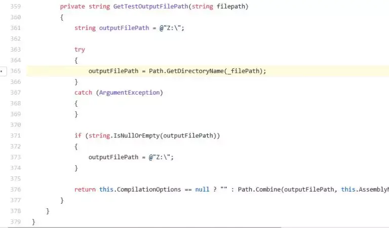 请注意突出显示的参数文件路径和字段 _filePath 的用法,它们很容易被混淆。_filePath 是一个错字,开发人员在研究人员报告了这个问题和类似问题后将之修复。在其他一些 C#项目中也发现了类似的 bug,被报告之后得到修复。