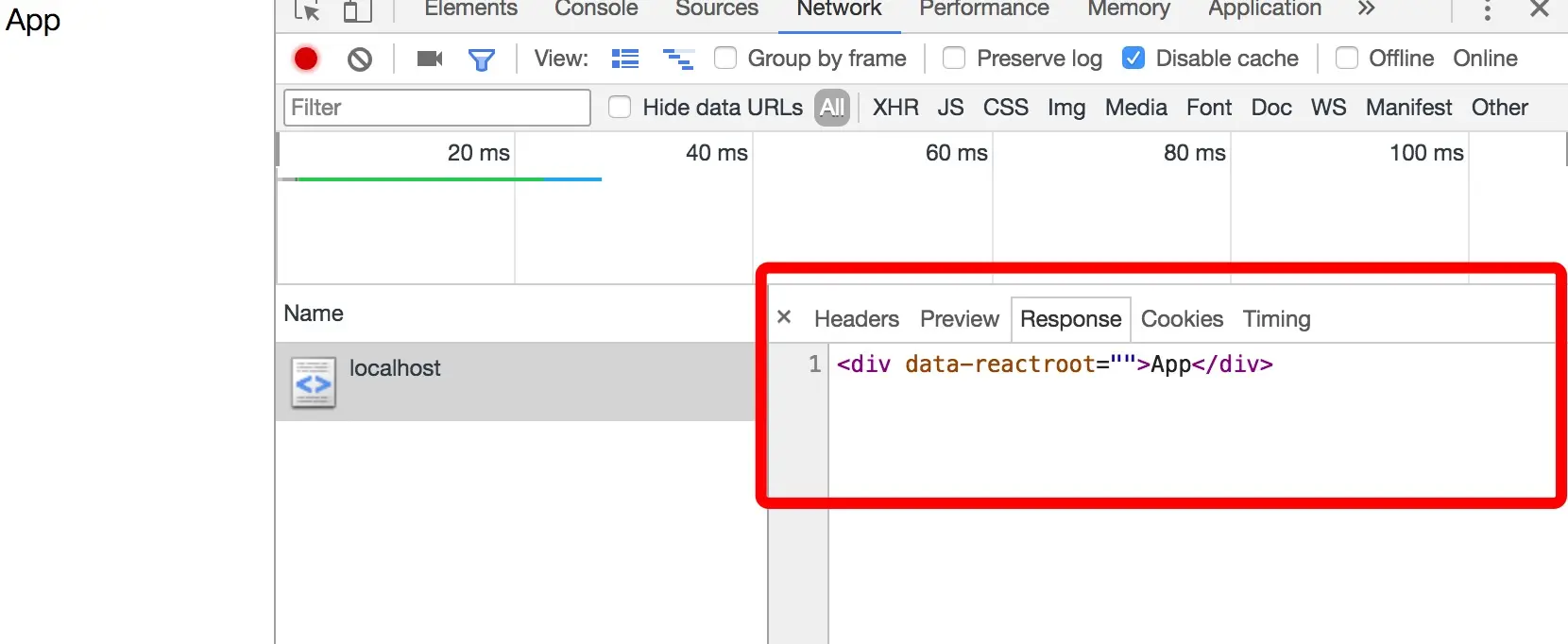 浏览器渲染与服务端渲染对比如下:(其中红色框内就是服务端渲染,很显然比起浏览器渲染快了很多)