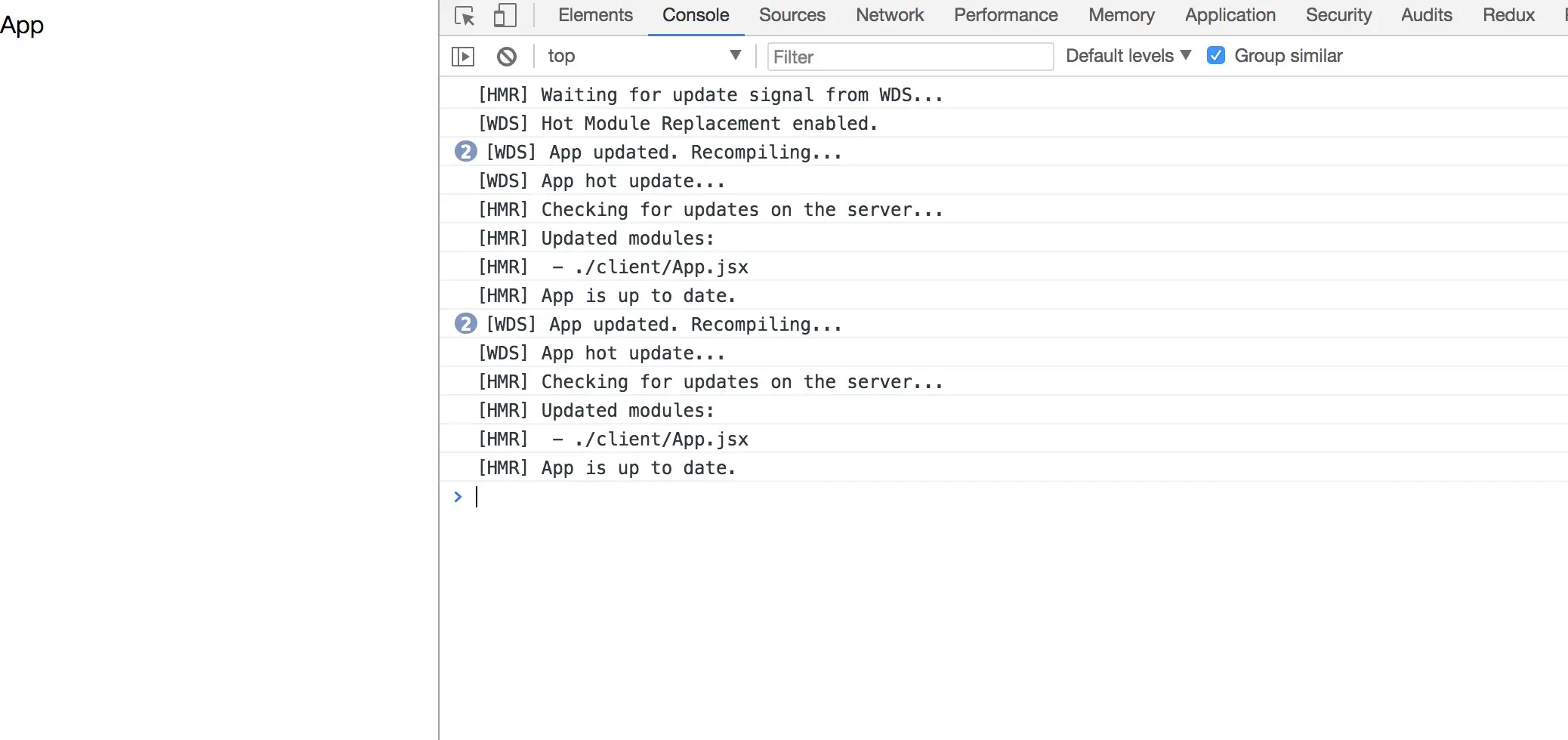 运行 npm run dev:client 和npm run dev:server,修改App.jsx的内容 浏览器无刷新更新
