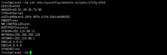 在slave1中,网络配置文件内容如下: DEVICE=eth0