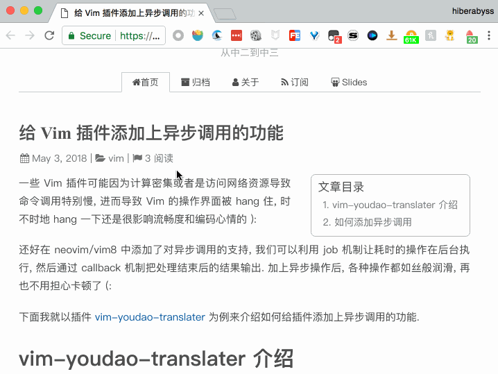 自己在用 Hexo 写博客的时候实现了一些 Vim 命令, 可以新建博客, 启动 hexo server, 部署, 打开当前博客对应的网页等. 可以考虑在有时间的时候把这些命令封装成一个 vim 插件, 到时也可以考虑添加上这个分享博客的命令.