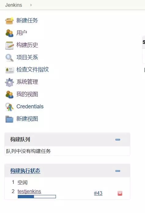 点击测试,如果配置是成功的,你的Jenkins左侧栏构建执行状态里将会出现一个任务。