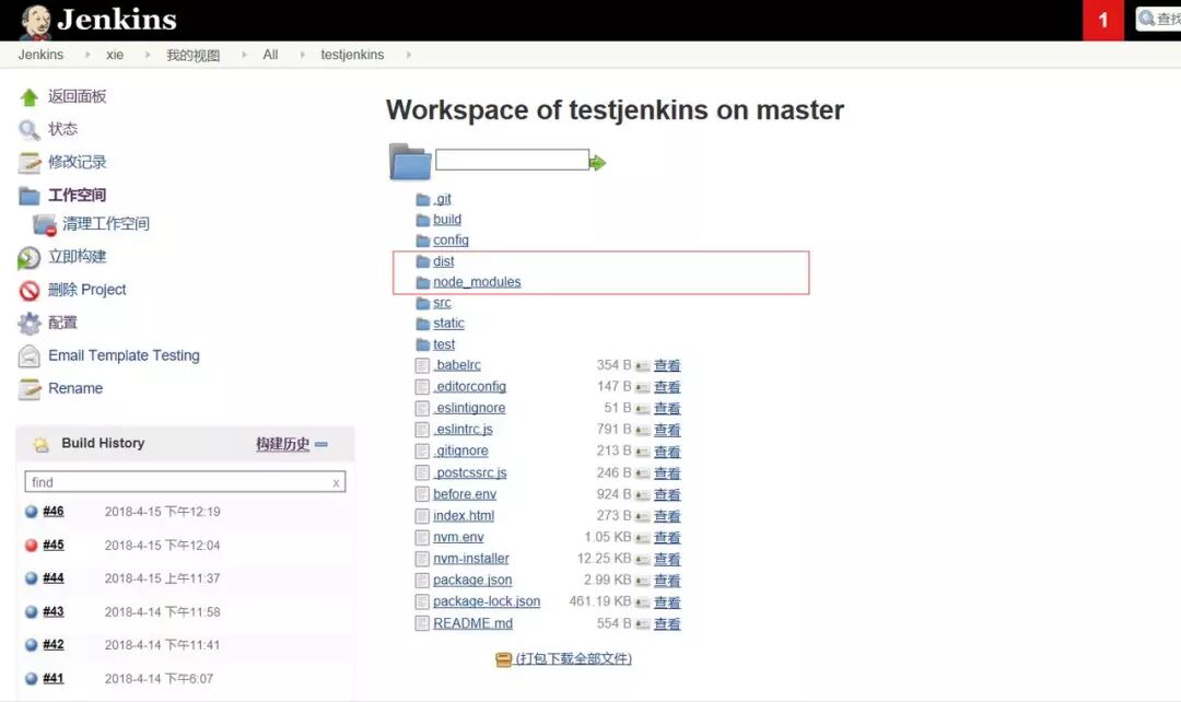 如果上一步是SUCCESS,点击项目的工作空间,将会发现多了dist和node_modules两个文件夹。