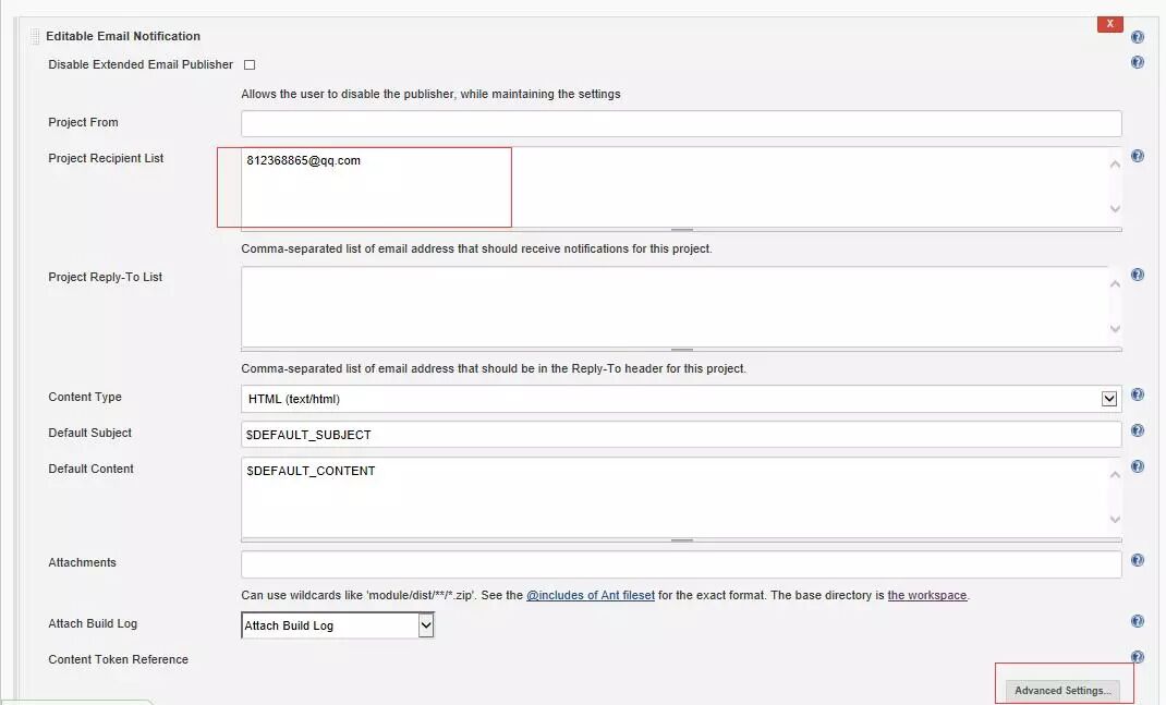 打开创建的那个任务,增加构建后操作步骤选择Editable Email Notification,Project Recipient List那里写你要发给谁邮件,可以多个,用分号隔开。
