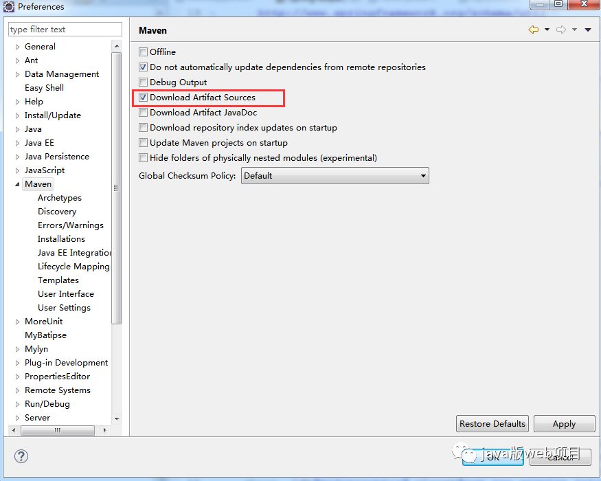 Window >>> perferences >>> maven,如下图