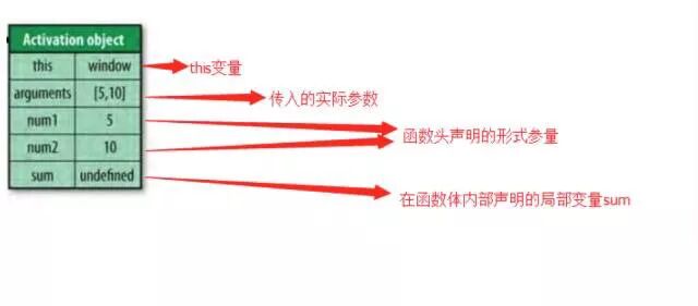 当一个函数对象被执行时,会为该函数对象创建一个活动对象(activation object)。这个活动对象主要包含当前函数运行所需要的环境,具体内容有: