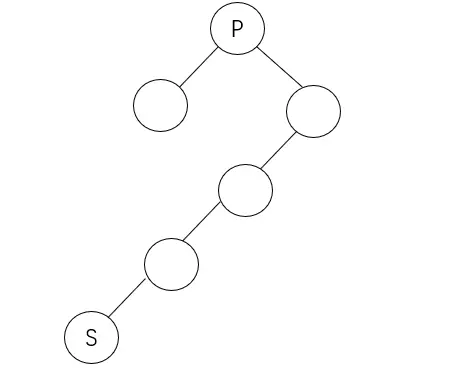 若其有父节点且为父节点右子树,其所在左子树的第一个祖先节点看图(p的后继为s),一个个往上找将p与A看成整体相对于B是其右子树,再往上找将P、B、A看成整体相对于C还是其右子树,再找P、B、A、C整体相对于S是其左子树,返回这个整体的第一个祖先节点即节点S