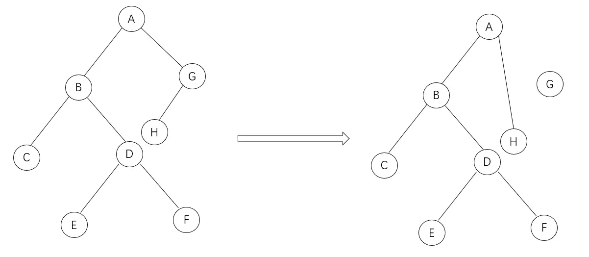 删除节点G: