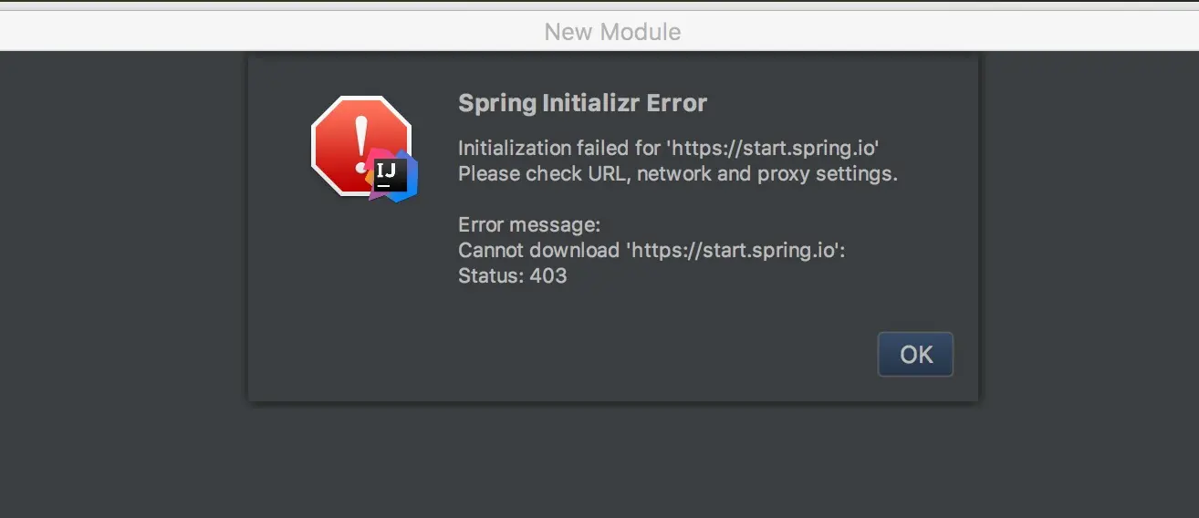 使用Intellij创建springboot项目Spring Initializr Error 403 zhumeilu 2018-05-04 1,150 阅读1分钟 使用Spring Initializr创建项目时报错 修改Intellij代理设置 在这里,我自己开启了ss,查看ss监听的地址和端口号,然后设置到Intellij中 创建项目成功