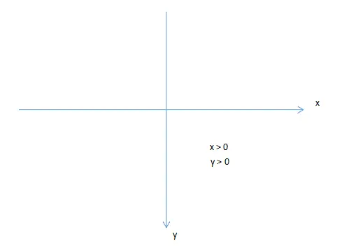 说到坐标系,大家最熟悉的还是数学里面最常用到的坐标系,如下图。在数学坐标系里面,坐标轴向上是y轴正方向,向右是x轴正方向。