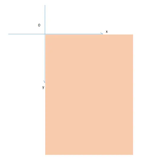在手机屏幕上坐标轴的体现为,如下图。假如粉红色区域为手机屏幕,屏幕的左上角是坐标系的原点(0,0),沿左边向下为y轴正方向,沿顶边向右为x轴正方向。