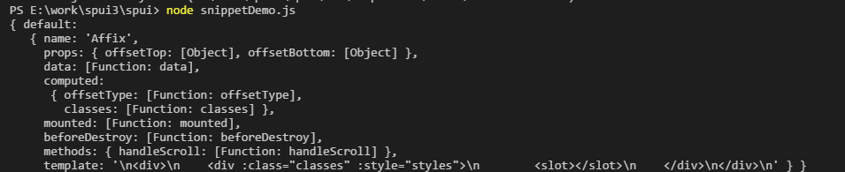 我们需要做的就是把每一个组件的信息拿出来,按snippet的格式输入到snippet.json文件中去,如何从组件库中提取每一个组件对应的props呢,当然不是手工收集这种蠢蠢的方式,程序员的方式当然是用代码工具避免重复劳动。我的想法是写一个工具方法从组件中获取props,然后在node环境中执行,并生成最终的snippet.json文件。我们知道require一个模块时,会返回到export中的对象,这样就能拿到props了。
