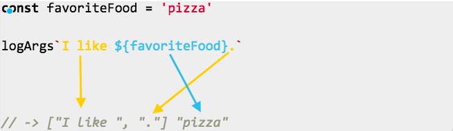 logArgs`I like ${favoriteFood}.`