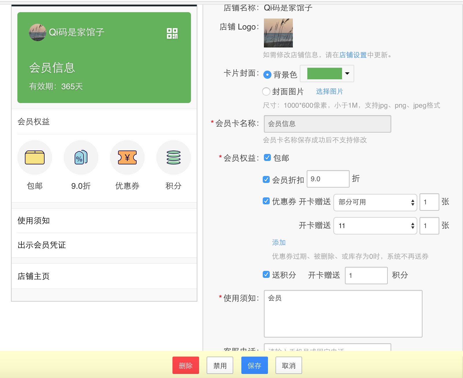 * 新建会员卡