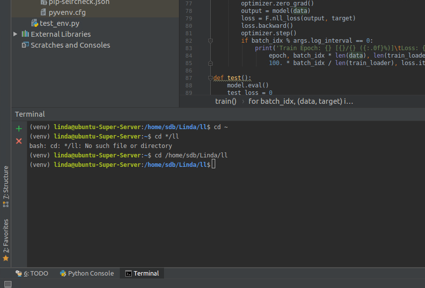 cd /home/sdb/Linda/ll安装TF与PyTorch的命令和第一种方法一模一样。PyCharm的terminal是类似酱婶儿的。