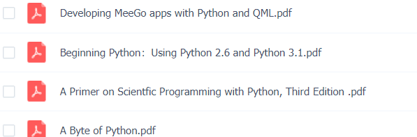 这些资源我都已上传到公众号「痴海」上,后台回复「python资料」,即可获取。上面只是列举出 10 个资源,我分享的一共有 18 个资源,全是和 Python 相关的。资源来自网上,如有侵权请及时后台联系我,我去删除。