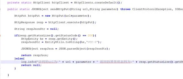 这个是文章开头提的问题的原因,因为登录要向单点系统验证用户的身份,所以它采用httpclient框架来发送http请求,它在这里把httpclient的变量作为一个静态变量,然后在方法里面复用该对象,然后方法里面调用完该对象又没有释放资源合理的close,这个框架默认会维护一个连接池,如果你申请一个资源使用后不释放,那么该资源将不被下一个请求使用,新的请求必须在等待队列中等待,然后当用户登录20次后,把资源池中的请求都耗尽了,新的请求拿不到资源位于等待队列中不断等待,导致服务器超时,登录失败504错误。