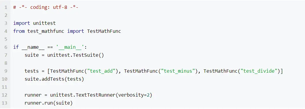 suite.addTests(unittest.TestLoader().loadTestsFromName('test_mathfunc.TestMathFunc'))
