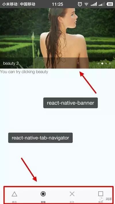 demo中使用的是react-native- banner(https://github.com/MarnoDev/HelloRN/blob/master/app/03_library_demo/BannerTest.js),使用比较简单。