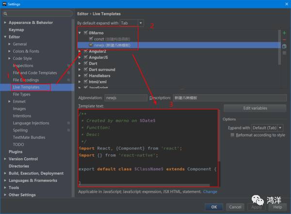 比如RN组件库的安装,添加一些常用的Live Templates等,下图是我添加的两个比较常用的,给大家参考一下,至于如何添加Live Template大家可以自行百度一下,比较简单,我就不过多赘述了。