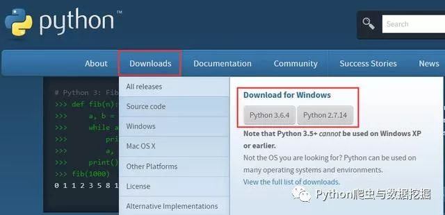 1、首先进入Python的官网:https://www.python.org,之后选择下图框框内的文件进行下载: