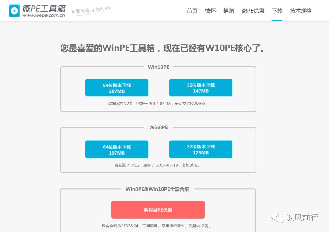 注:win 10 PE 是可以用来操作 win 7 的。此外,你也许瞧见了下载按钮下的一行字:“全面支持 NVME 盘”。这个 NVME 是一种固态硬盘的接口规范,建立在 M.2 接口上。