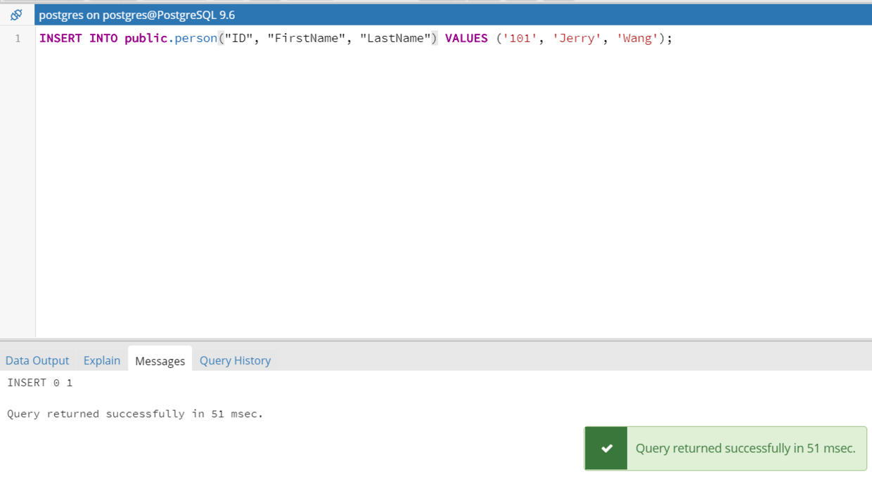 在命令行里插入一条测试数据: