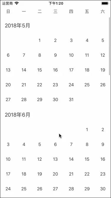 - 其次,每个月份由又可以拆分成renderMonthHeader和renderMonthBody。其中,monthHeader展示相应的年月信息,monthBody则是这个月的日期信息。(PS: 有一点可以取巧的是monthBody部分,我们可以用FlatList的numColumns这个属性实现,只要设置成7就行。)