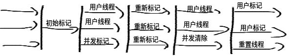 其中 1,3 两个步骤(初始标记、重新标记)仍需 STW. 但初始标记仅只标记一下 GC Roots能直接关联到的对象, 速度很快; 而重新标记则是为了修正并发标记期间因用户程序继续运行而导致标记产生变动的那一部分对象的标记记录, 虽然一般比初始标记阶段稍长, 但要远小于并发标记时间.