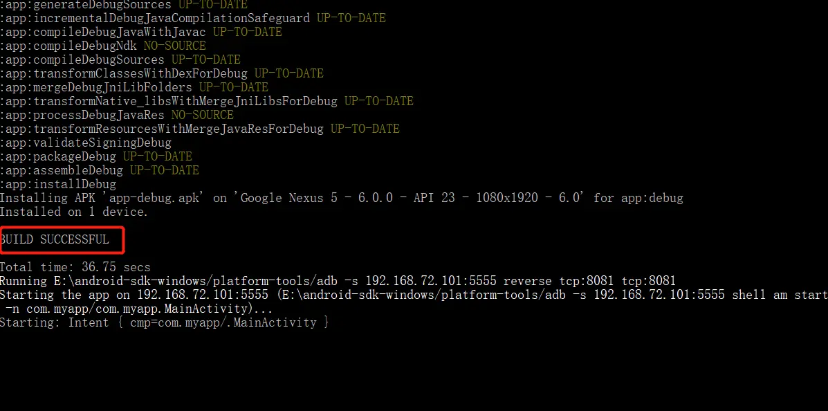 react-native run-android运行项目。