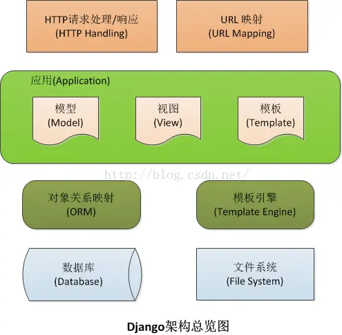 如下图所示 django 的架构总览图,整体上把握以下 django 的组成: