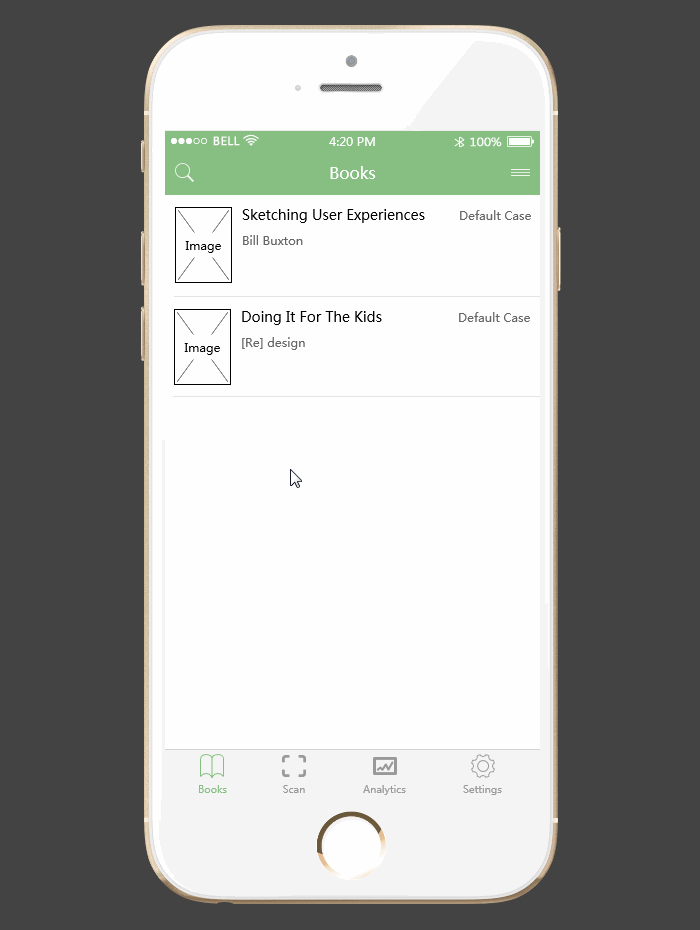 Book Amigo是一款阅读App,它的界面清爽简约,操作快速简单,在这款App中,你拥有一个私人图书馆,可以轻松管理书架。在这款原型中,图书的搜索是用抽屉组件侧滑展开来设置搜索筛选条件,然后再进行图书搜索。抽屉组件在Mockplus中是已经封装好的交互组件,链接好触发组件后,直接双击往里添加内容即可。