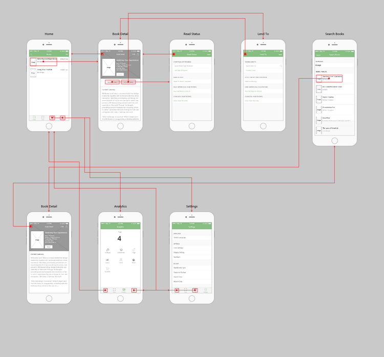 这个原型的主要页面有:主页、书籍详情页、搜索页面、设置页面等。