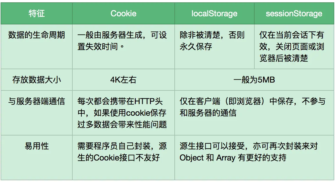 对比cookie 、localStorage 和 sessionStorage
