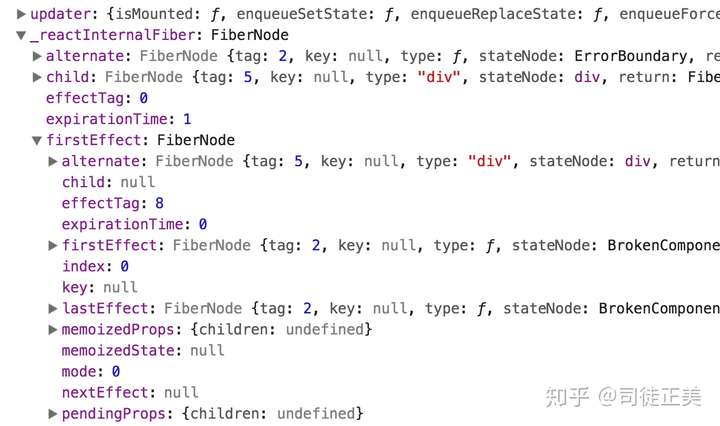 alternate,备胎,替死鬼,替身演员。你也可以视它为git的开发分支,稳定没错的那个则是master。每次 setState时,组件实例stateNode上有一个_reactInternalFiber的对象,就是它的master,立即复制一个用来踩雷开路的alternate对象。由于React16又使用另一种时间分片更新技术,这就要求它每次只会diff一部分子组件。子组件一出错,就回滚,试验新的子组件。这样有节制的更新每一级孩子。加之,React在开发环境下的调试消息是非常完备的,因此带来的开发体验超级爽快。