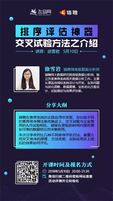 福利:5月10日(周四)晚八点:【线上直播】排序评估神器---交叉试验方法之介绍