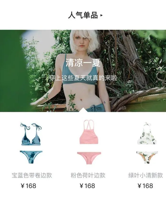 在最后,就是刚刚上新的版块,这里商品我们采用平铺的展现方式。