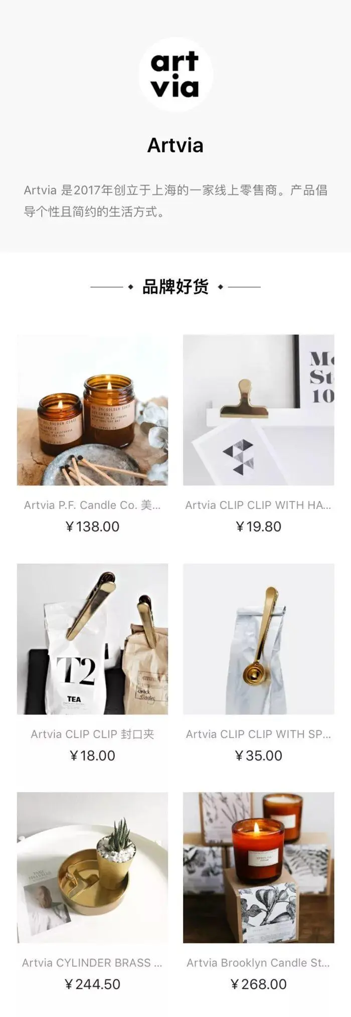 品牌详情页展示品牌的故事描述,以及品牌下面的所有商品。