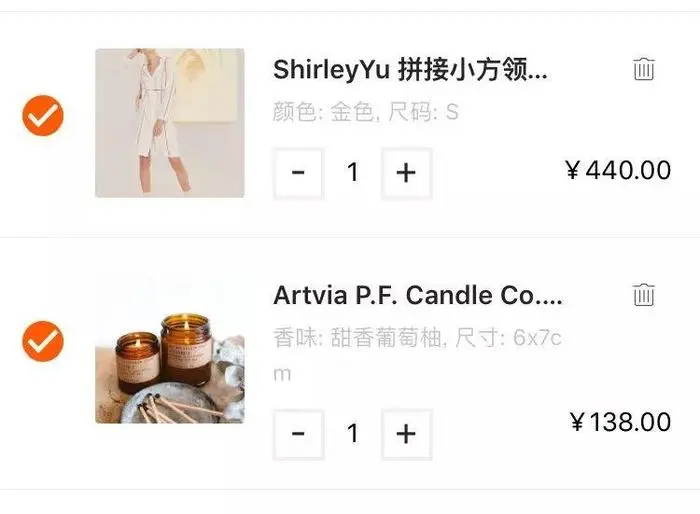 购物车版块没有太多的变化,需要显示基本的商品标题和商品的SKU,并有添加和删除功能。